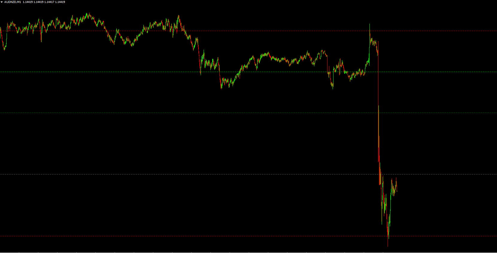 The indicator plots GREEN dotted lines as resistance zones and RED dotted lines as support zones. These reflect the trailing zero levels of each currency pair, such as: