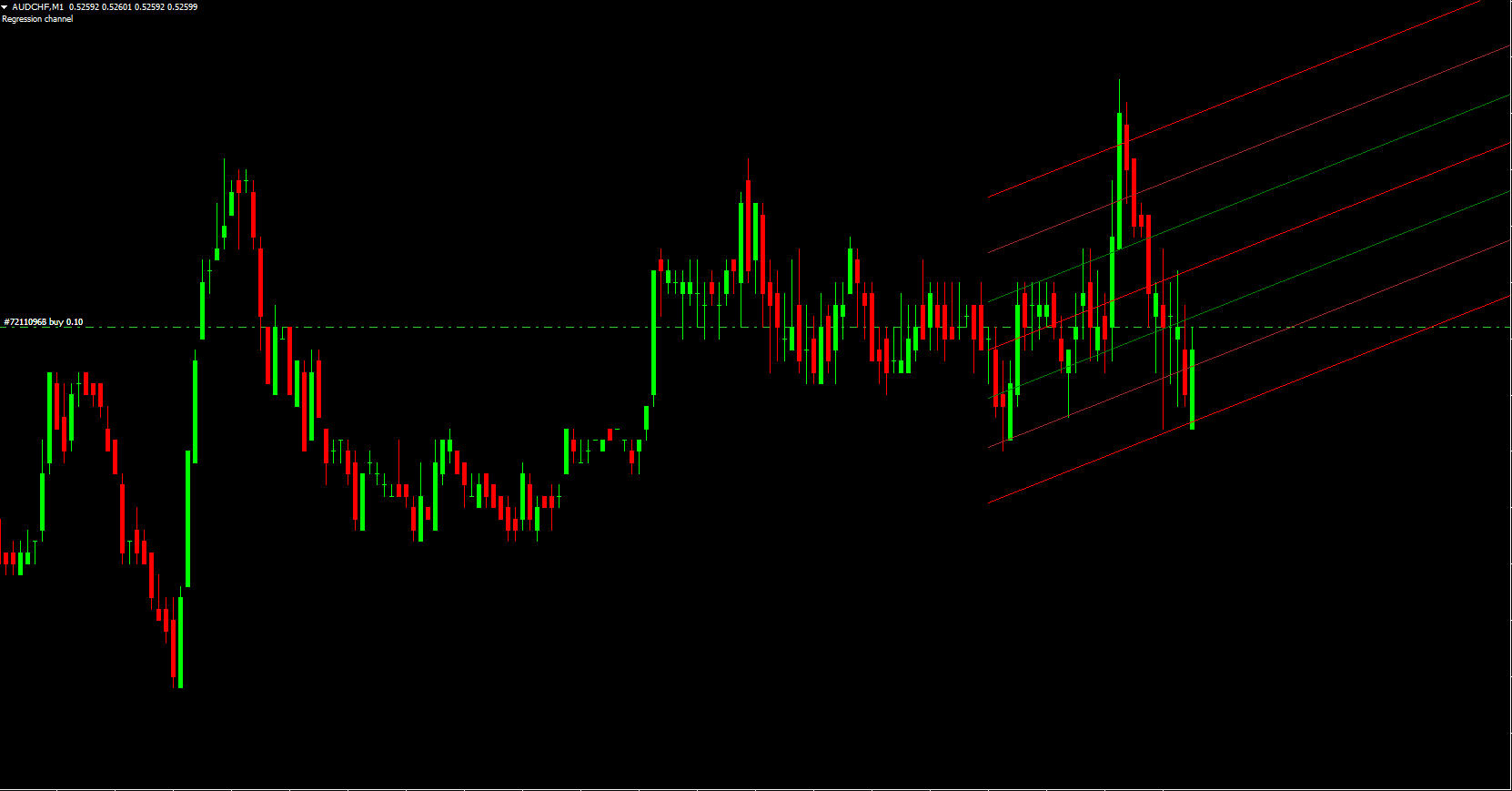 Midline: Represents the regression average of price movement.