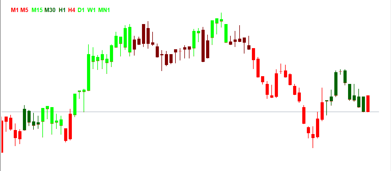 Unlike standard MACD indicators that focus on a single chart period, the MACD Trend Candles Indicator for MT4 summarizes the MACD trend across multiple time frames — for example, M15, H1, H4, and D1 — all within the comments section.