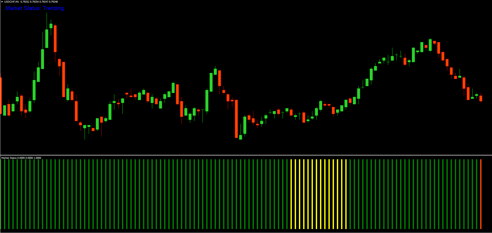 When the indicator displays green bars, it signals that the market is experiencing strong momentum. This typically represents a good opportunity to enter a trade in the direction of the trend. Traders who rely on trend-following strategies will find these signals particularly valuable, as they confirm ongoing strength in the market.