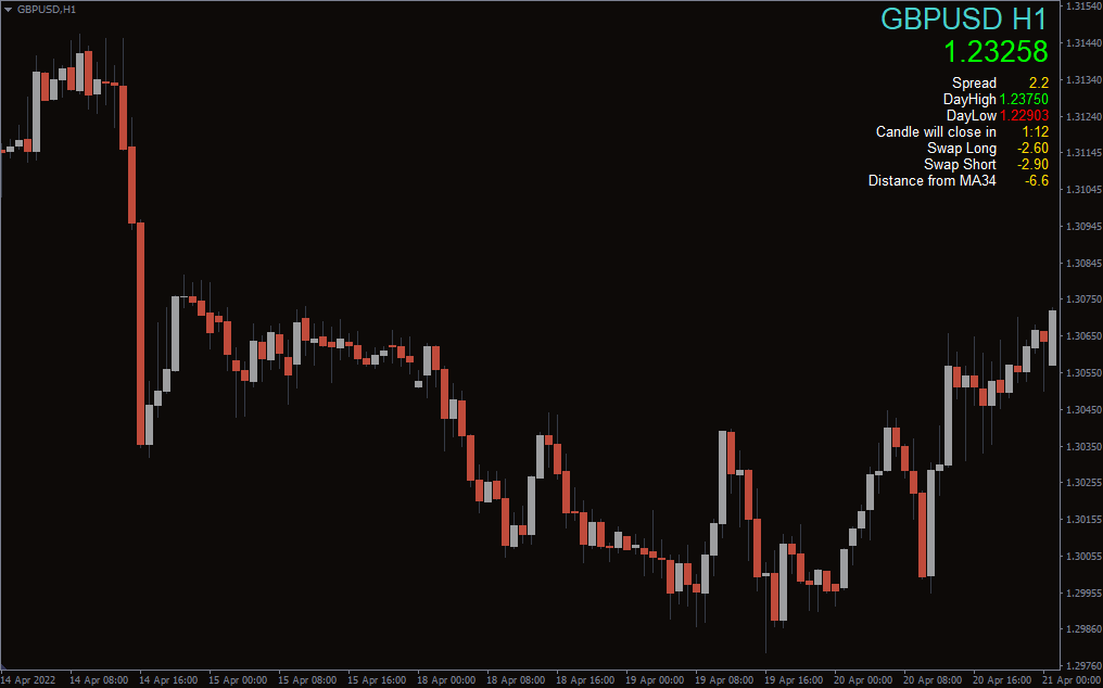 The Milanese Market Info Indicator for MT4 is one of the most useful tools for traders who want quick access to critical market information. It conveniently displays the spread, candle timer, daily high/low, swap rates, and distance from the moving average, all in one compact panel.