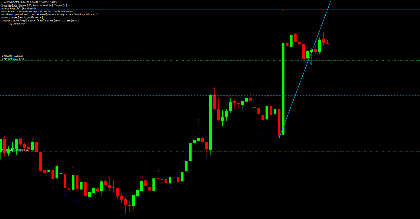 In addition to trendlines, the indicator automatically marks support and resistance levels.