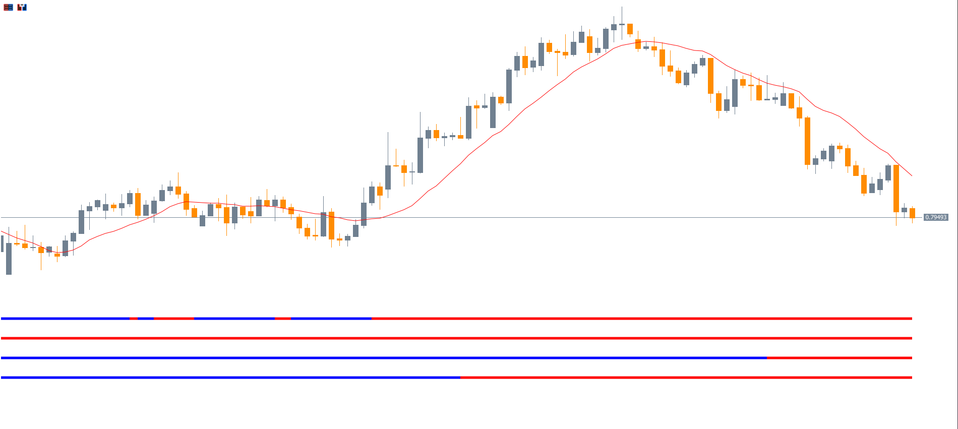 This layout enables you to quickly understand the overall market bias. For example, when all four lines are blue, the market is bullish across all timeframes. Conversely, when they’re red, it signals bearish momentum.