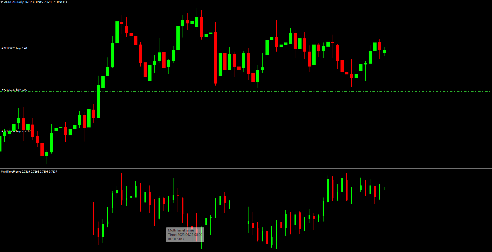The Multi Time Frame (MTF) Indicator for MT4 is a powerful forex trading tool that allows traders to view multiple timeframes of a single currency pair on the same chart. By showing higher, intermediate, and lower timeframes simultaneously, the indicator helps traders make more informed decisions.