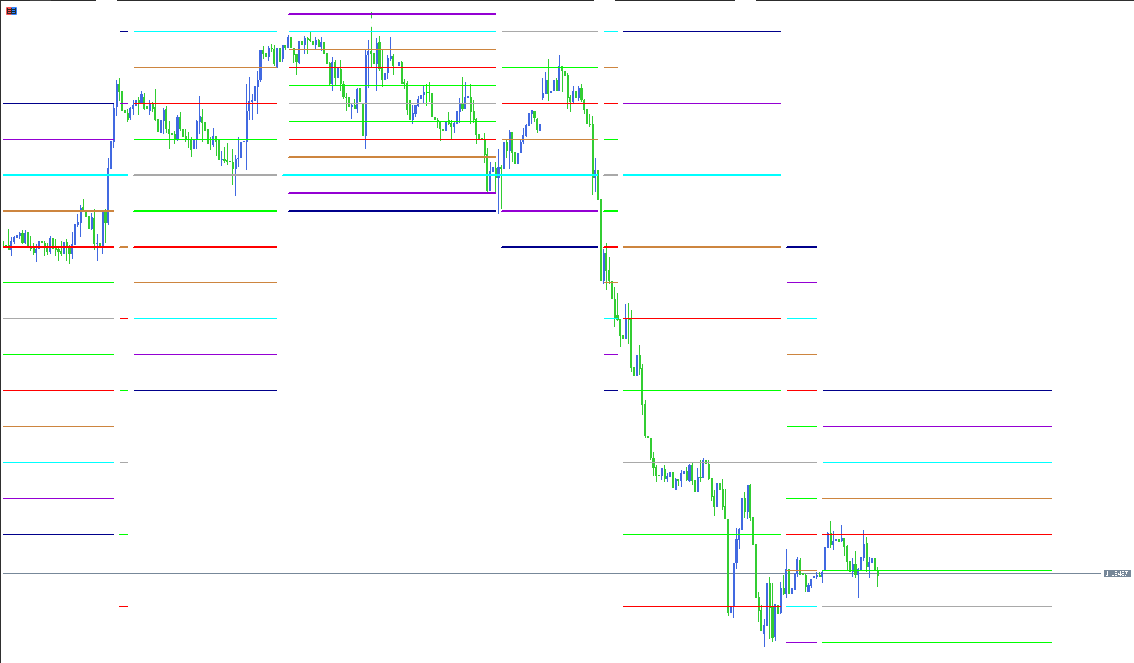 Lines 5 to 8: Indicate stronger support and resistance areas. Price reactions around these lines tend to be more significant, often marking trend reversals or major retracements.