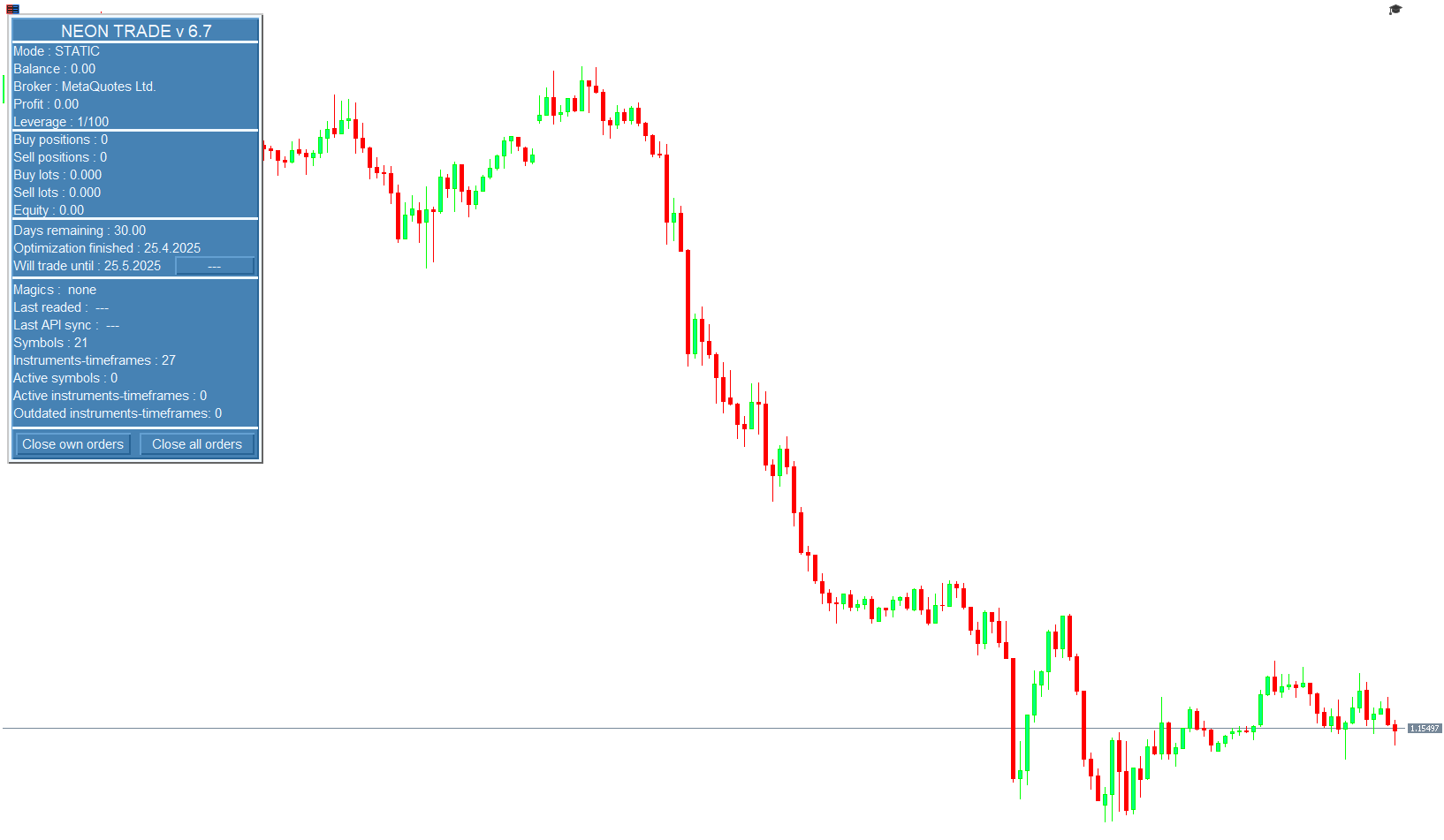 The Neon Trade EA MT5 generates its own internal buy and sell signals by continuously analyzing price action and volatility across multiple symbols.