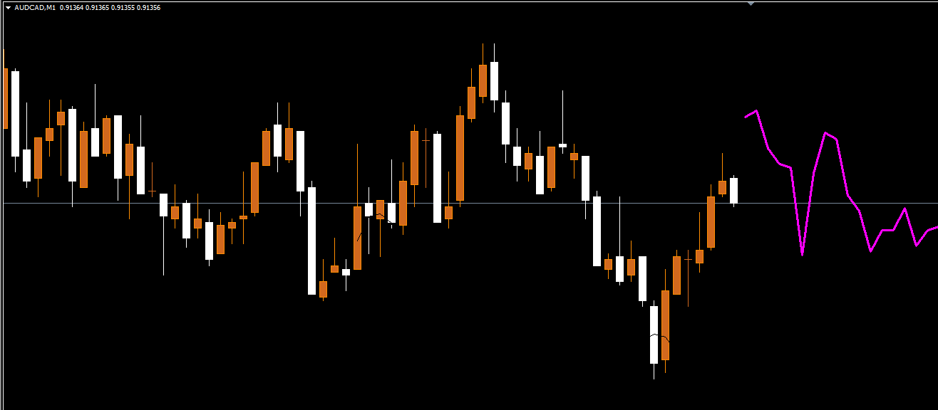 The Next Move Indicator operates by studying the relationship between past price patterns and real-time market behavior. It then calculates and plots a magenta-colored projection line on the chart, which represents the expected future direction of the price.