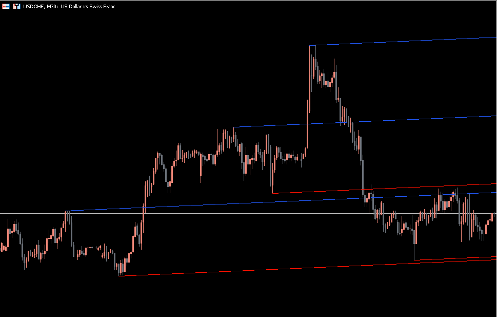 At its core, the Parallel Pivot Lines Indicator MT5 uses adjustable slope and lookback parameters to determine the most relevant swing points on a chart. It then draws two sets of parallel lines above and below the price action. These act as dynamic guides representing potential support and resistance zones.