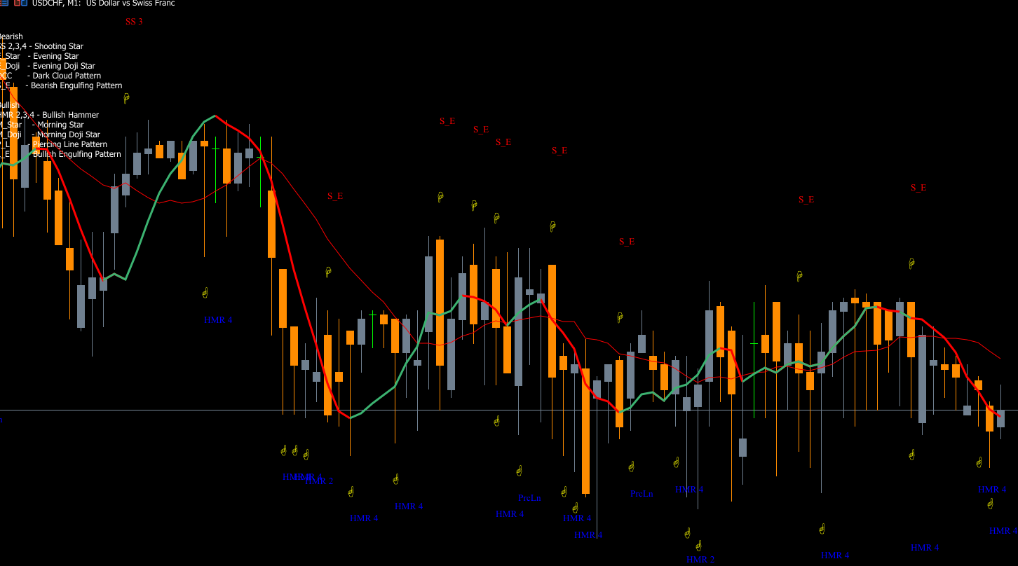 The Pattern Recognition Indicator scans each candlestick as soon as it forms. If it matches a known pattern, the indicator instantly marks it with a coded label. This eliminates guesswork and saves time—especially for traders who monitor multiple currency pairs or timeframes.