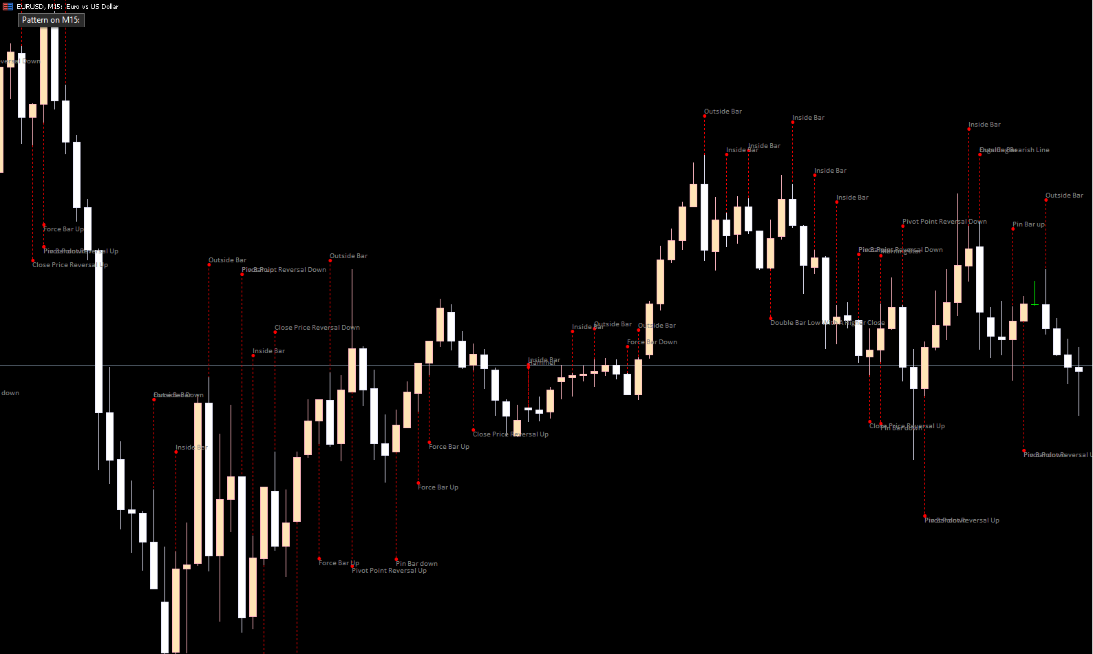 The indicator works across M1 to D1 charts, allowing traders to detect micro-patterns for scalping or broader formations for swing trades.