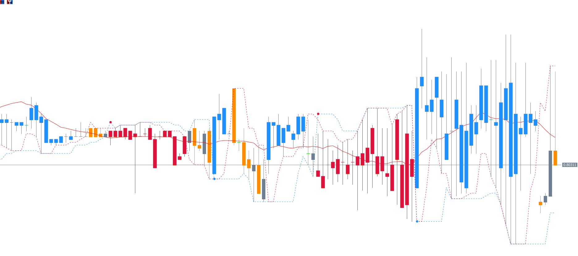During ranging or neutral conditions, the indicator leaves candles uncolored, helping traders avoid low-quality setups.