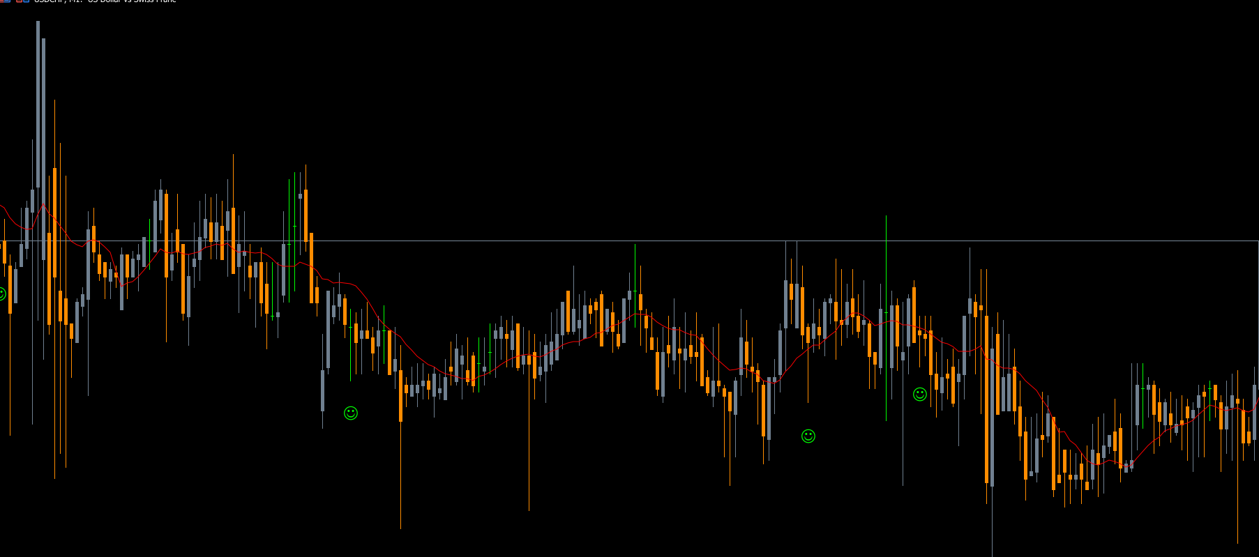 The Pinbar Detector Indicator scans live MT5 charts for pinbar formations and marks them with colored emoticons: