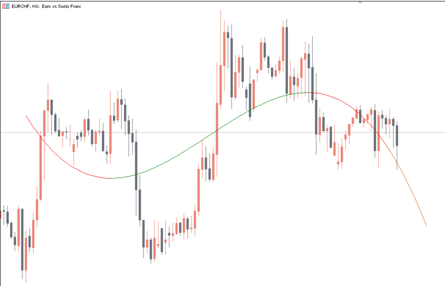 Instead of providing standard buy/sell signals, the indicator generates a colored curved line: