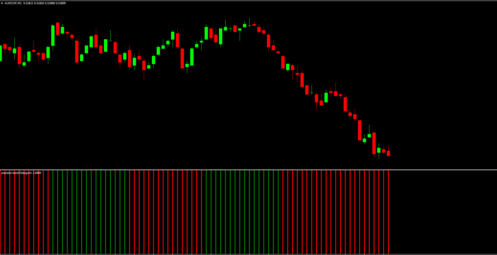 Because of its simplicity, the Precision Trend Histogram works on any timeframe. However, traders often find it most reliable on higher timeframes such as H1, H4, and Daily charts, where noise is minimized and false signals are less frequent.