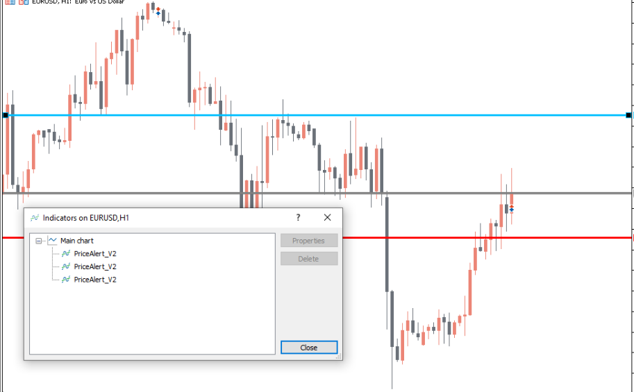The Price Alert Indicator for MT5 is a trading assistant tool that notifies traders when price reaches important support and resistance levels. Traders can add multiple levels to their chart, and the indicator immediately provides alerts via: