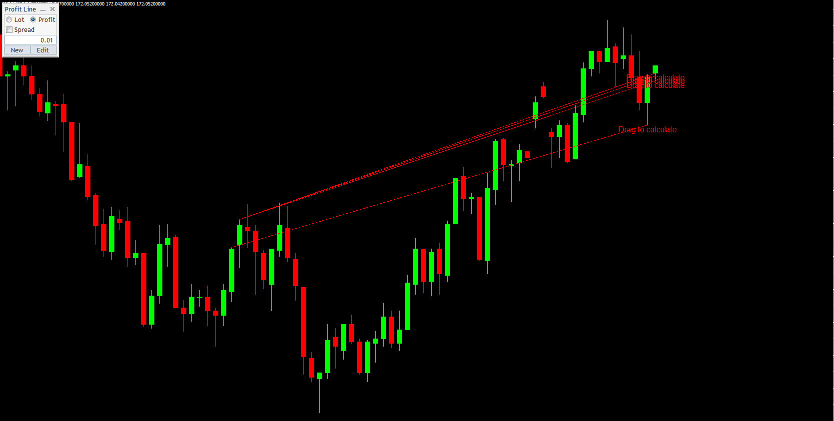 This makes it extremely useful for real-time planning as well as analyzing historical trades. For example, by dragging the profit line across previous candles, you can backtest your strategy's profitability without needing additional tools.