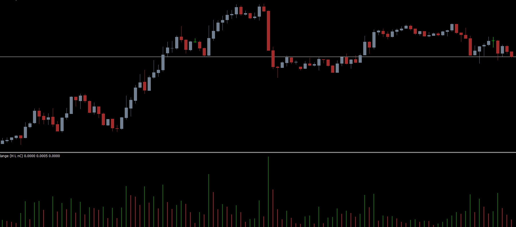 On the MT4 chart, the Range indicator typically displays two bar colors: