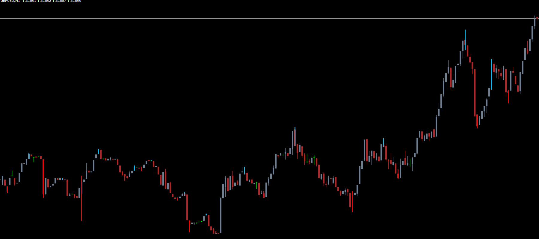 Sky blue bars represent bullish reversal opportunities, often appearing at the low of a retracement within an uptrend. They indicate that buyers may be regaining control.