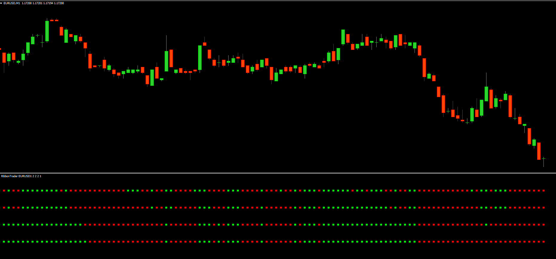 For scalpers, the Ribbon Trader Indicator helps identify micro-trends on lower timeframes such as M1 or M5 charts. Quick color changes between green and red highlight brief price swings, allowing traders to enter and exit positions efficiently.