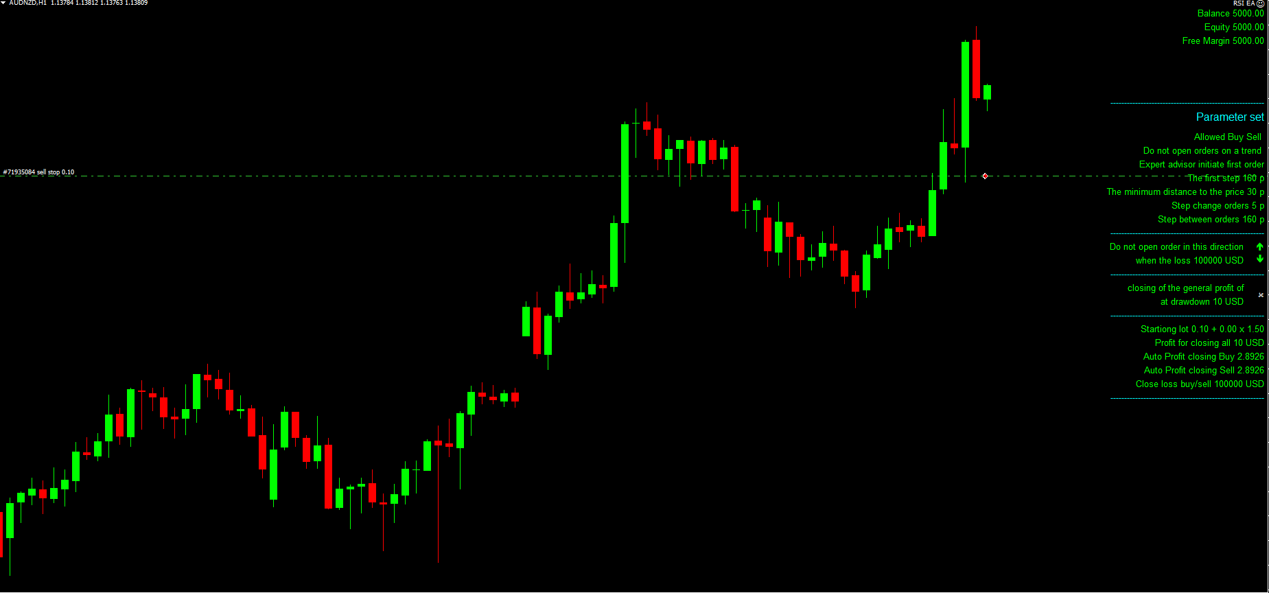 The RSI EA generates clear buy and sell signals based on the RSI oscillator readings: