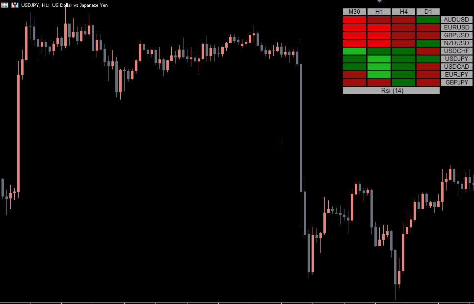 The RSI Heatmap MT5 Indicator is a powerful Forex tool that helps traders determine the strength of individual currencies. By combining the Relative Strength Index (RSI) with a multi-currency heatmap, traders can visualize currency strength across multiple timeframes, making it easier to identify potential trade setups and trend directions.