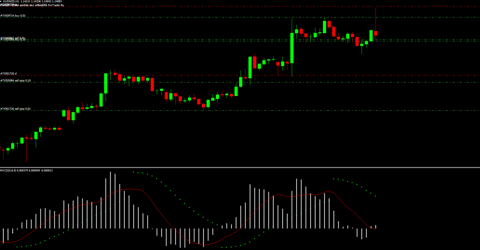 The indicator operates by plotting lime-colored SAR dots over the MACD histogram within a separate window in MetaTrader 4. These dots represent points where the trend may reverse, based on the relationship between the MACD histogram and the SAR values.