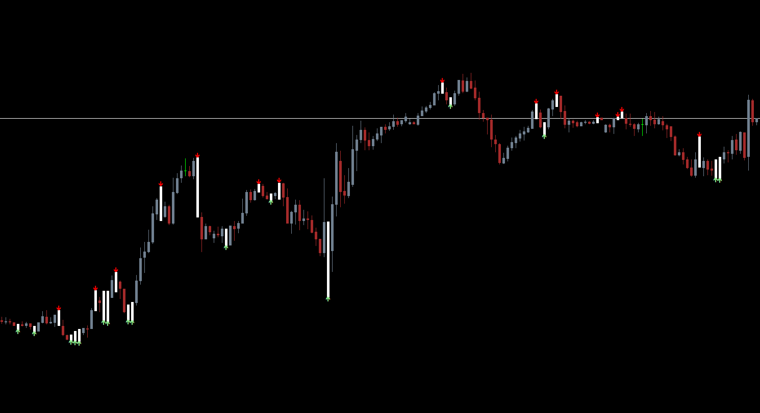 Green Arrow: Appears below the candlestick, signaling a rising price and a potential BUY opportunity.