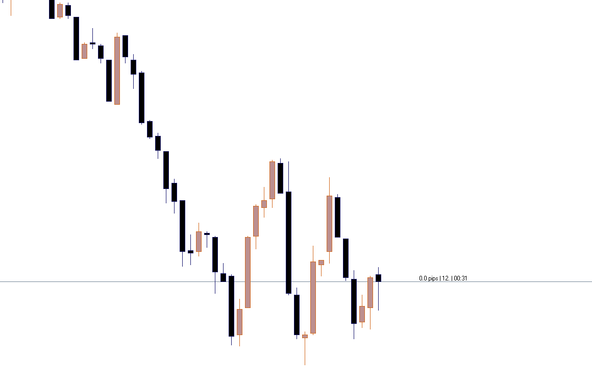 Once installed, the Show Pips Indicator appears in the top-right corner of your chart. For example, on a EUR/USD H1 chart, a sell position will display: