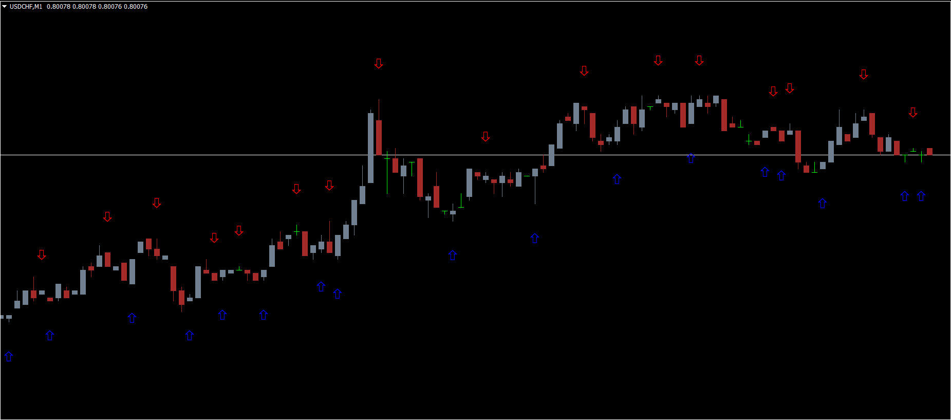 Exit the trade when a blue arrow or opposite signal appears.