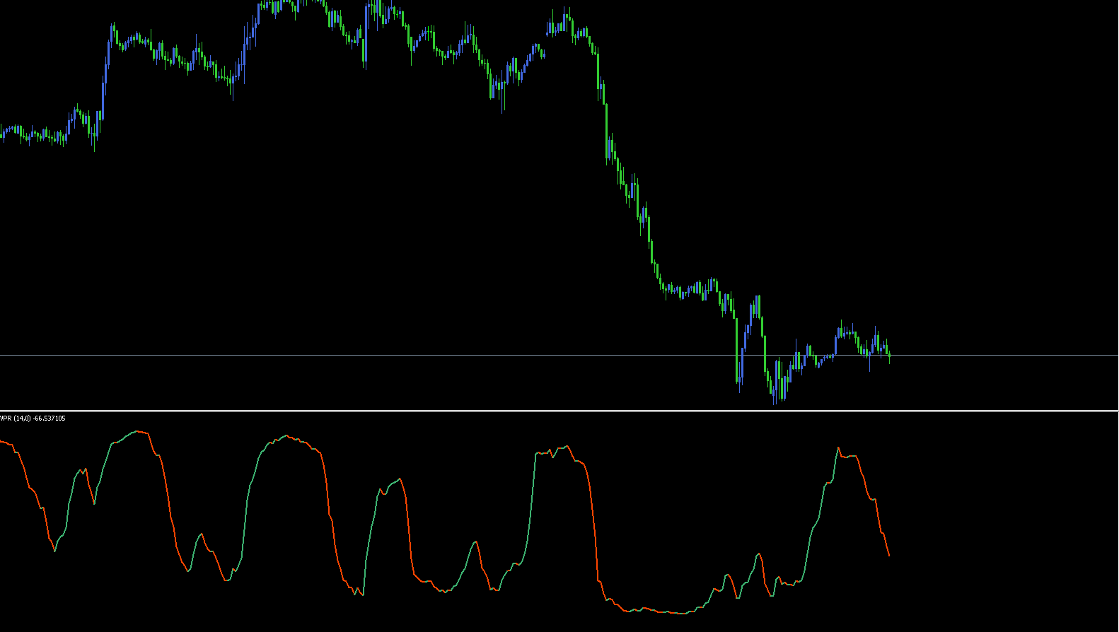 The Smoothed WPR line moves up and down depending on price momentum. When it starts flattening or changing direction, it may indicate an upcoming reversal.