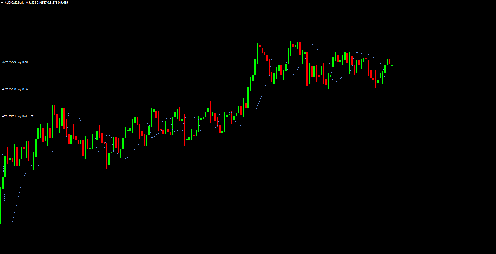 On the chart, the SSL indicator plots a dotted trend line—often displayed in blue or green depending on settings. The position of this line relative to price reveals the active trend: