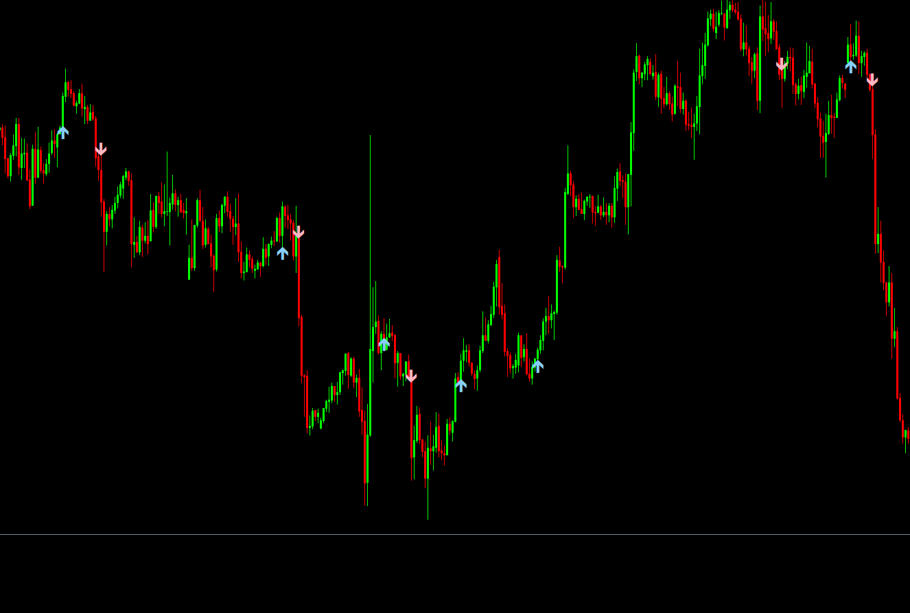 These crossovers form the backbone of the Stalin Indicator’s logic, providing clear visual cues to traders about potential reversals or continuations in price movement.