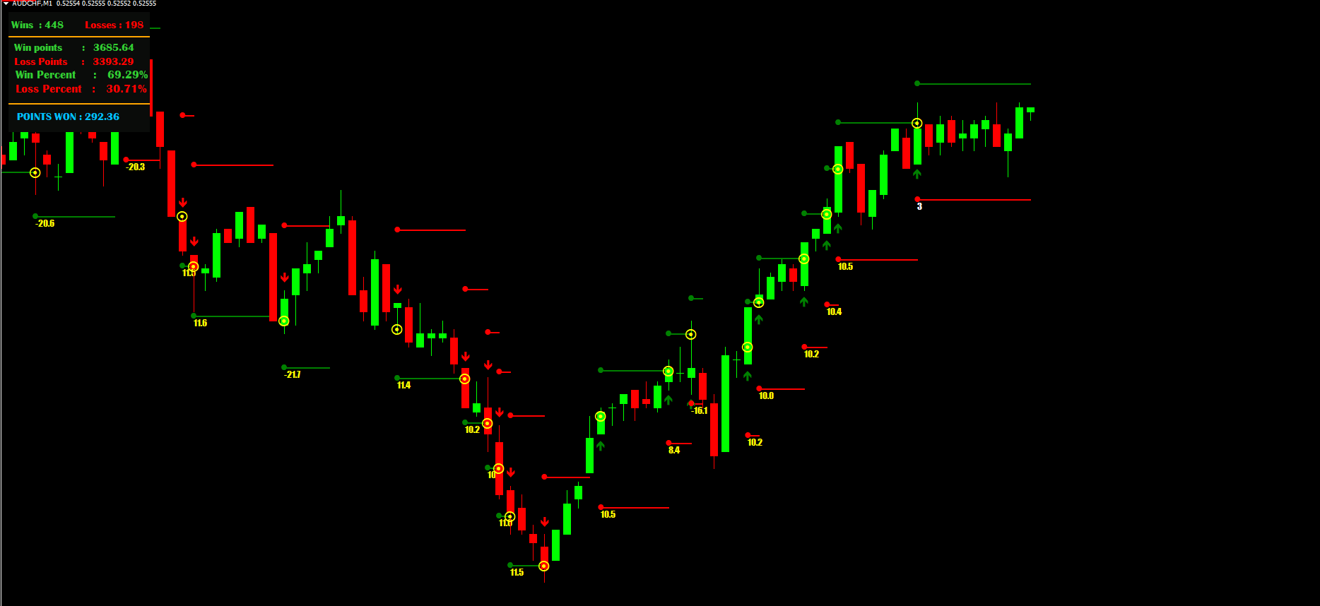 Thanks to the visual arrow system and performance panel, traders can make decisions based on clear data instead of gut feeling. Every signal is supported by analytics, so you can trade with confidence and consistency.