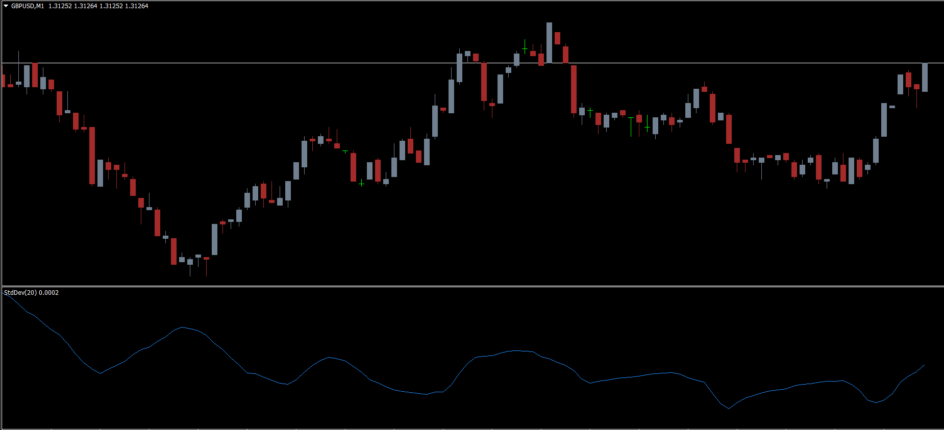 When the Standard Deviation remains low and flat, it indicates low volatility. Traders should prepare for a possible breakout, as price consolidation often leads to strong directional moves.