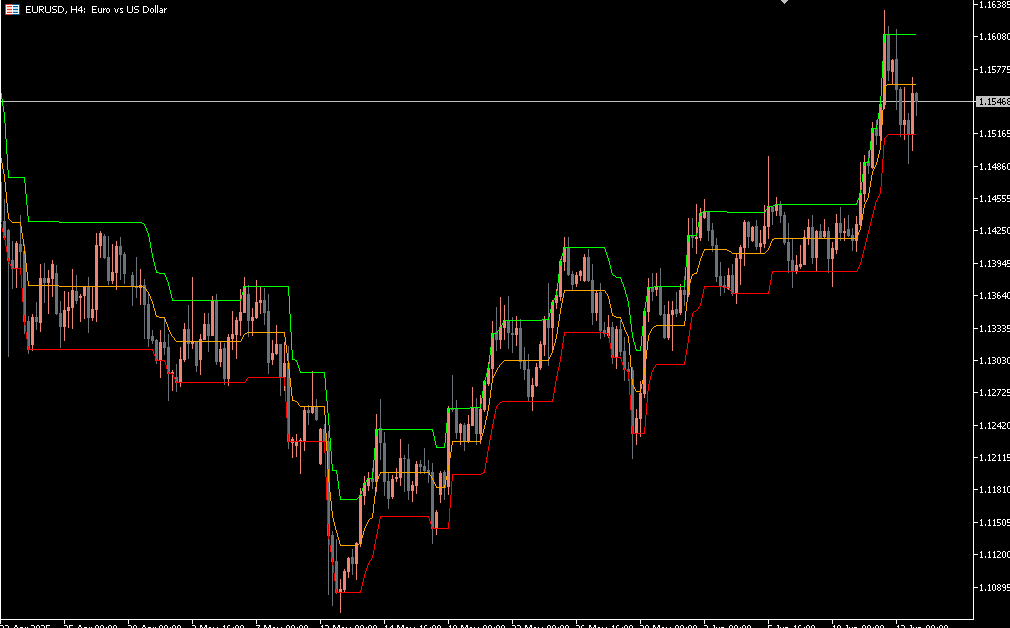 Upper Channel: Signals bullish strength when price closes above this line, often indicating the start or continuation of an uptrend.