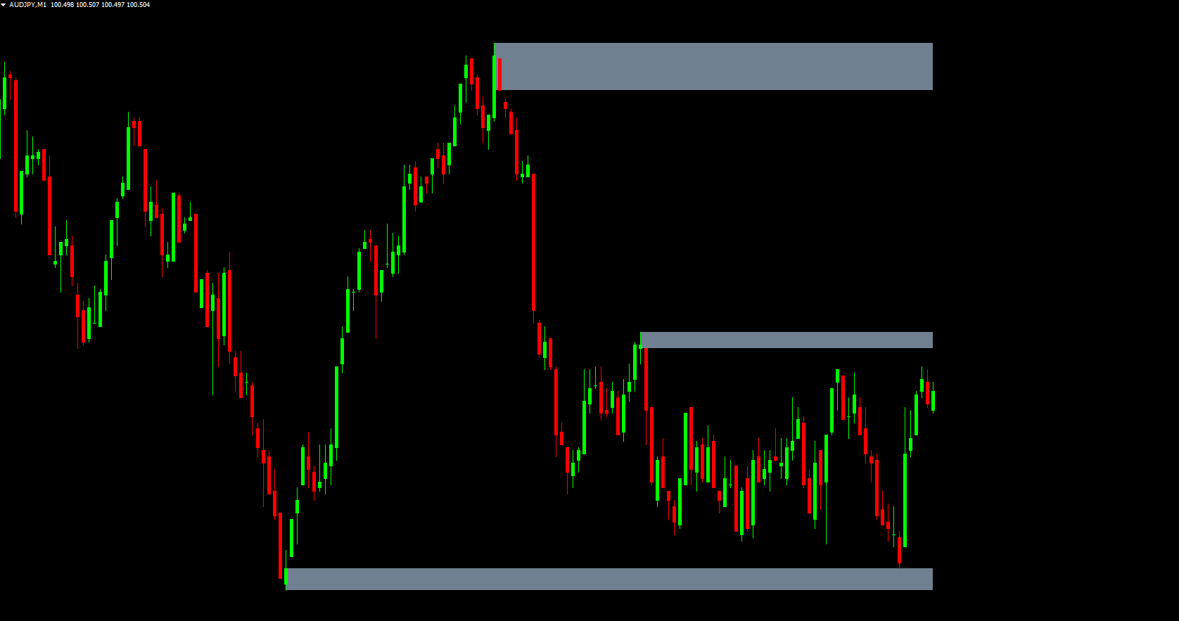 The Supply and Demand Zones Indicator automatically detects and plots supply and demand zones on your MT4 chart. These zones appear in two colors for quick interpretation: