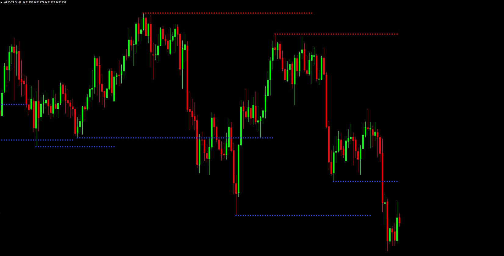 The indicator scans both historical and real-time price data to identify key swing points — the natural high and low pivots formed by market structure.