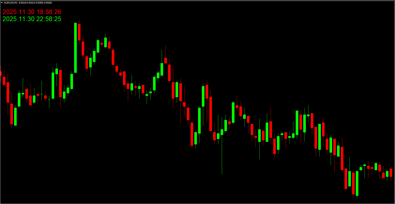 This dual-display helps traders avoid confusion, especially when timing entries around economic events or session changes.