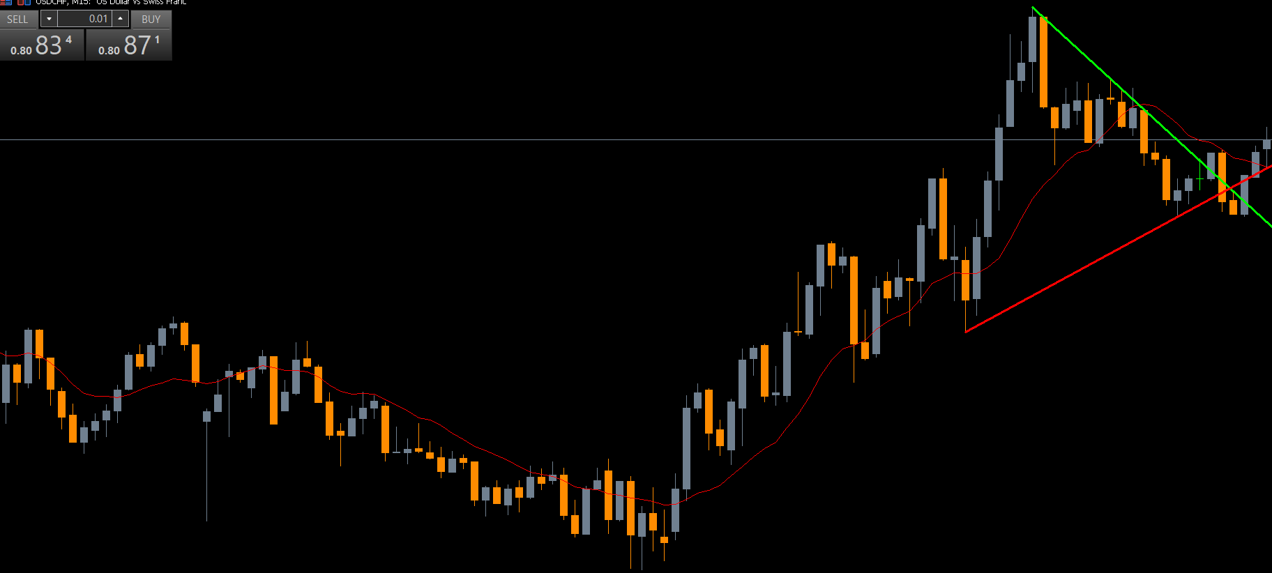 If the channel is sloping downward, the market is bearish; if it slopes upward, the trend is bullish. In a sideways channel, price is consolidating.