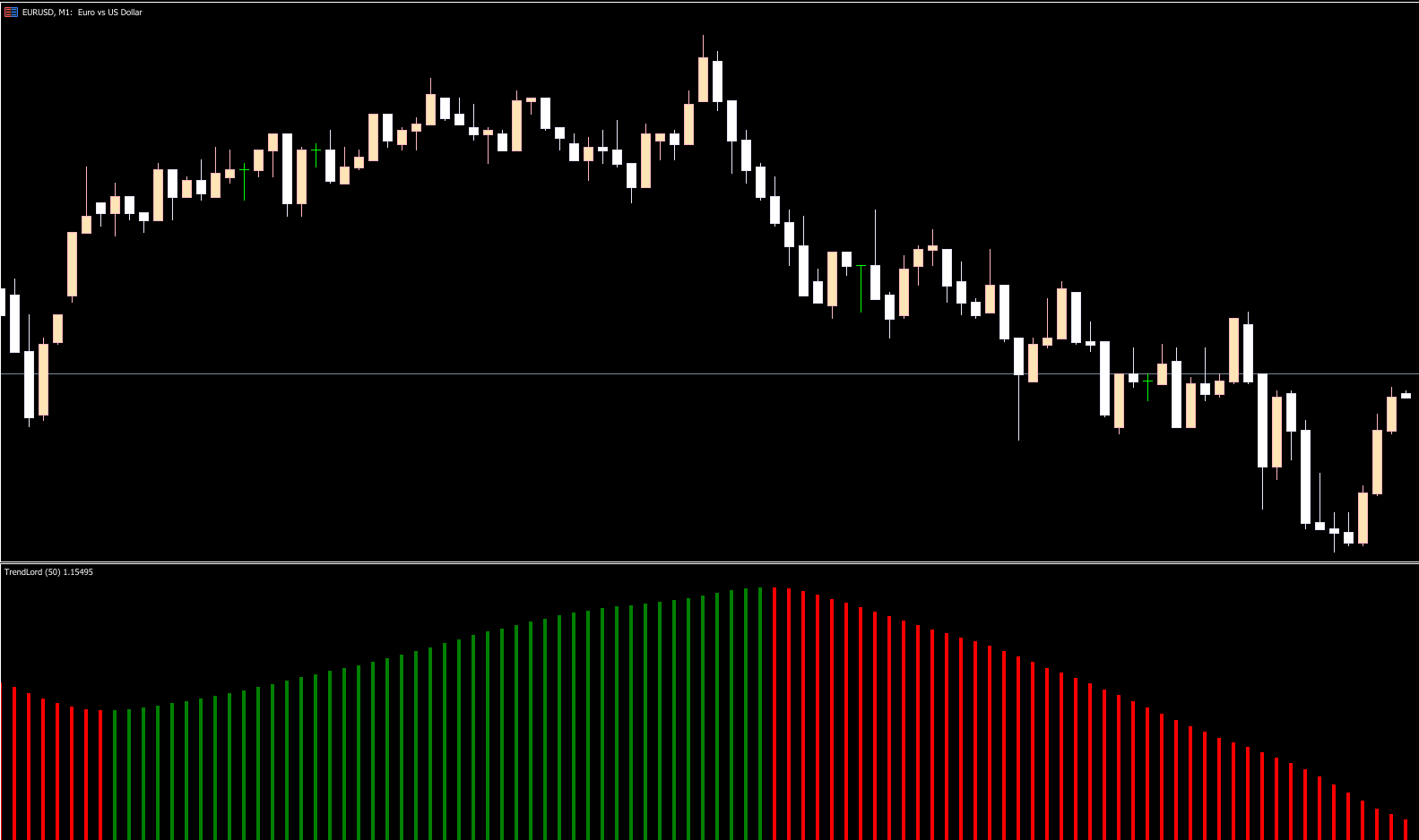 The name speaks for itself. The Trend Lord Indicator is built around a 12-day smoothed moving average of closing prices. It displays colored bars that behave similarly to a moving-average trend filter, making trade direction easy to interpret.