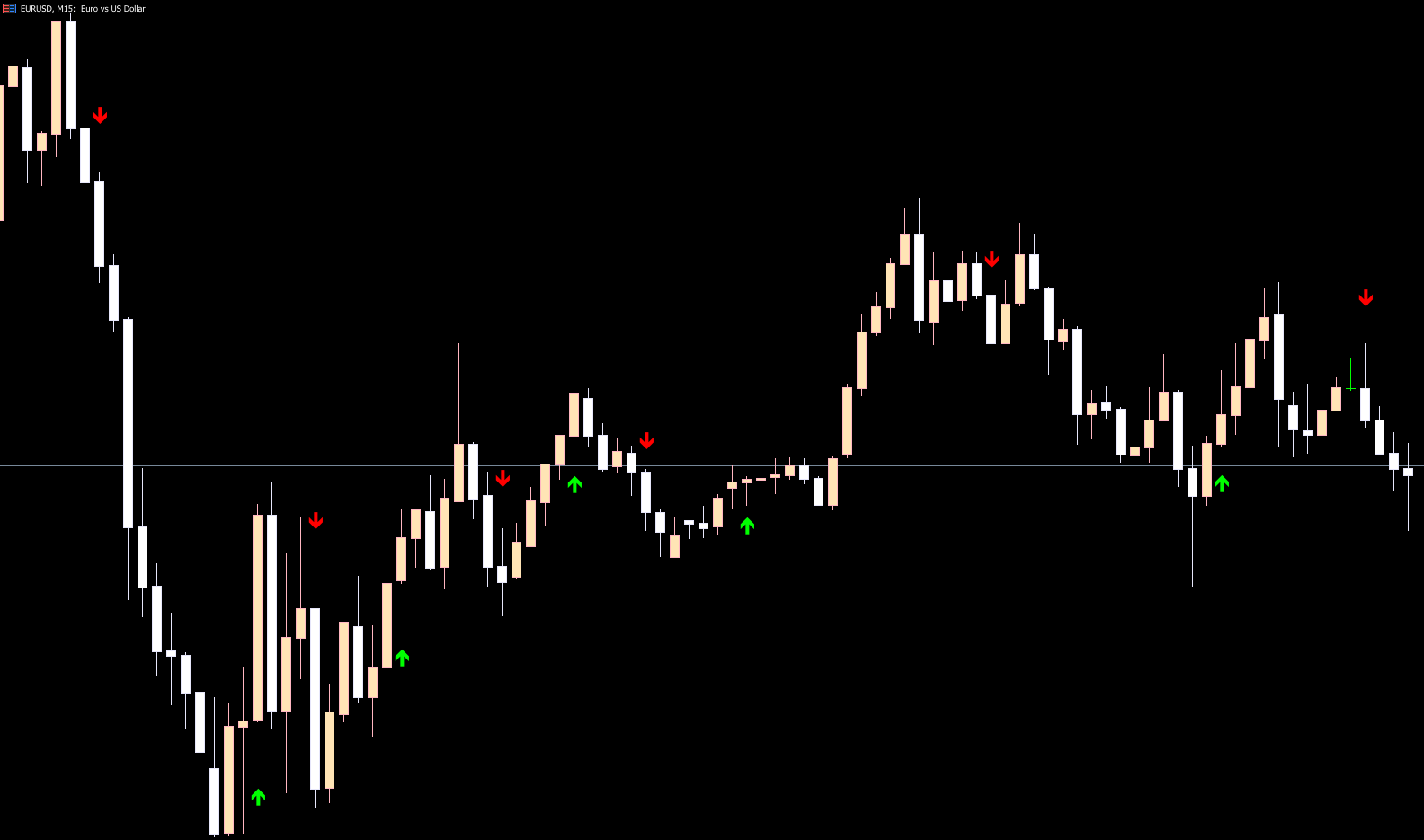 By using these visual signals, traders can determine entry and exit points efficiently. The indicator works across all timeframes, from 1-minute charts for scalpers to daily charts for long-term trend traders.