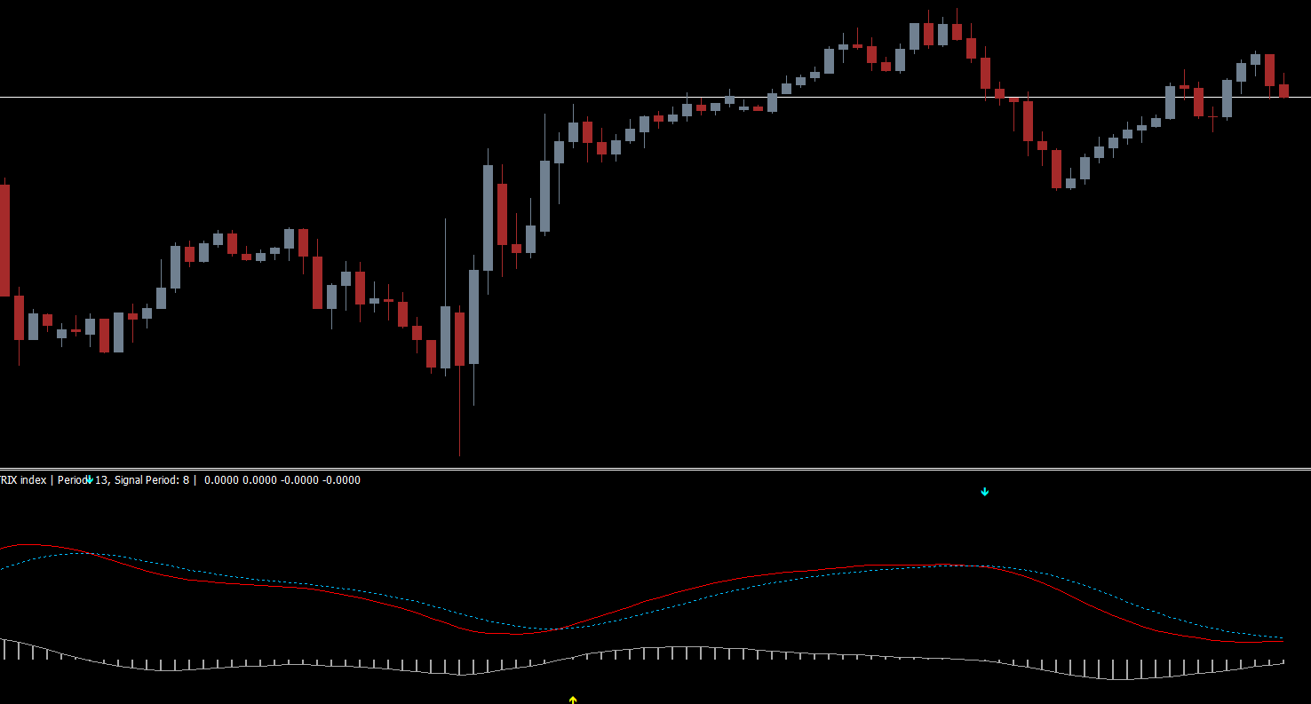 The TRIX indicator plots an oscillator in a separate window on your MT4 chart, along with clear arrow signals:
