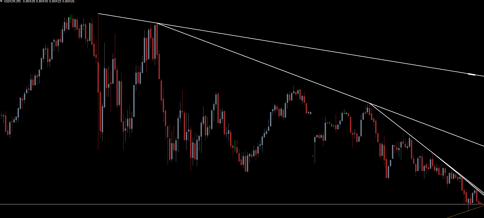 When the price breaks below a lower trend line, a SELL trade can be entered. Key steps include: