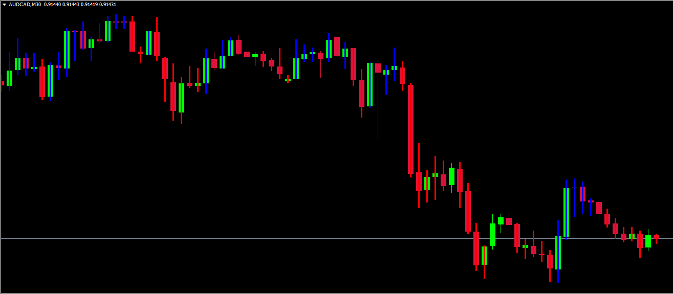 By recalculating these values, the indicator identifies whether the trend is strong enough to display a colored bar. If not, the candle is skipped, highlighting only the dominant price moves.