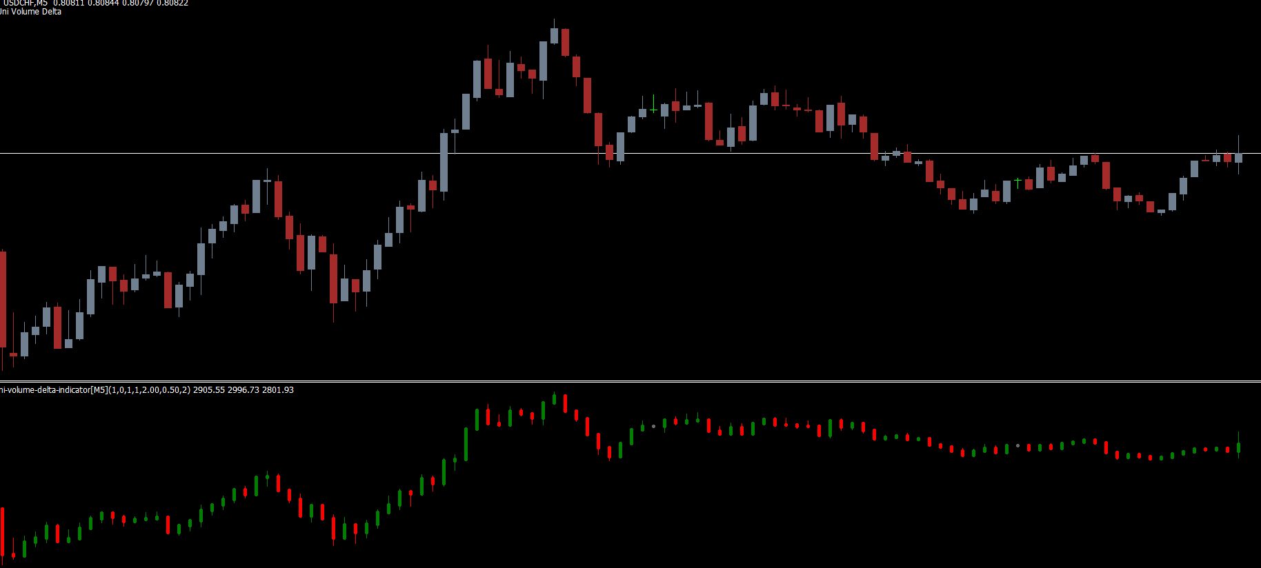 The Uni Volume Delta Indicator for MT4 is a simple yet highly informative technical tool designed to visualize market volume directly on the price chart. Instead of using a separate indicator window, it displays colored bars—similar to candlesticks—to reveal bullish, bearish, and neutral volume conditions. This makes it easy for forex traders to interpret market pressure, momentum, and potential trend reversals at a glance.