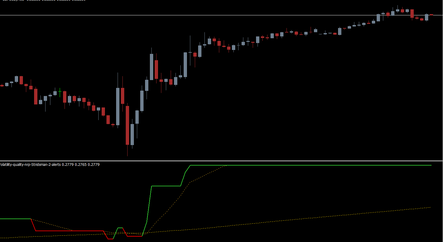 The Volatility Quality Indicator changes from red to green