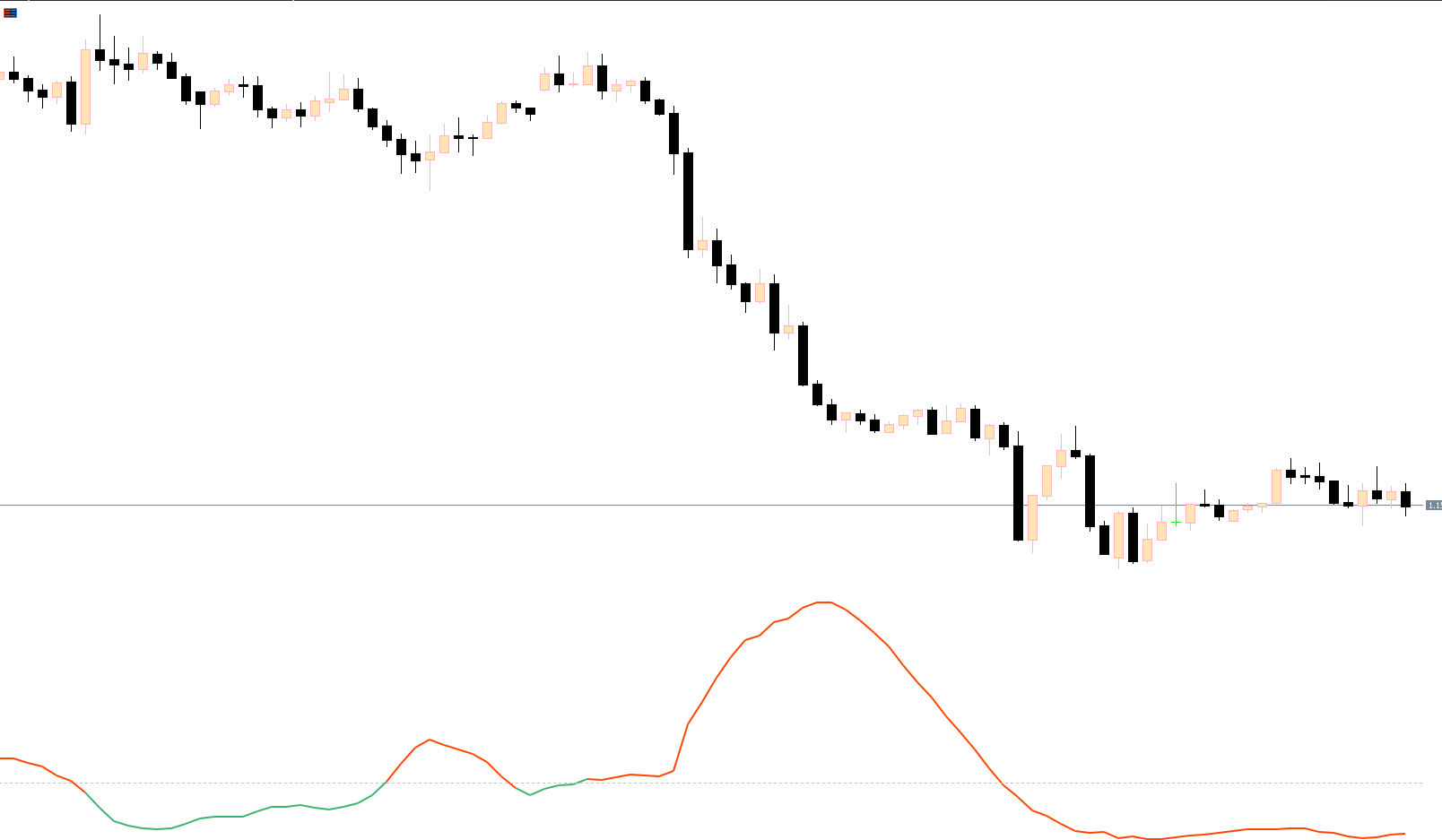 The Volatility Ratio Indicator is displayed in a separate window on the MT5 platform. Its color changes depending on market conditions: