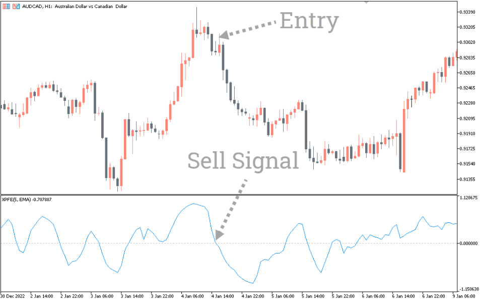 For example, when analyzing the GBP/USD pair on a 5-minute chart, traders observed that when XPFE fell below zero, the price began to drop. Once XPFE turned positive again, it marked the end of the downtrend — a perfect moment to exit the trade.