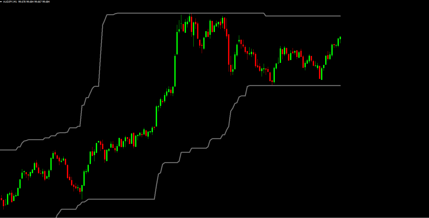 The indicator uses price highs and lows to draw upper and lower channel lines, forming a visual boundary around price action. These lines represent key support and resistance levels that reflect market behavior.
