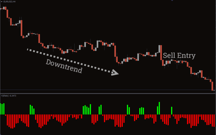 When applied to the EUR/USD pair on a 4-hour timeframe, the Yefekt Indicator effectively highlights when the trend is likely to reverse. For instance, after a prolonged uptrend, the histogram crossing below +0.5 and turning red often precedes a shift to a bearish phase.